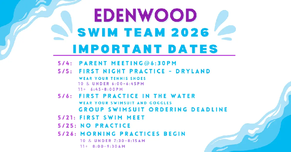 We are looking forward to the 2026 Summer Swim Season. The attachment contains some of our upcoming important dates.